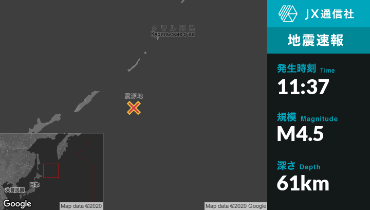 | 震源地 | ロシアのKuril'skから東北東326kmの地点 |