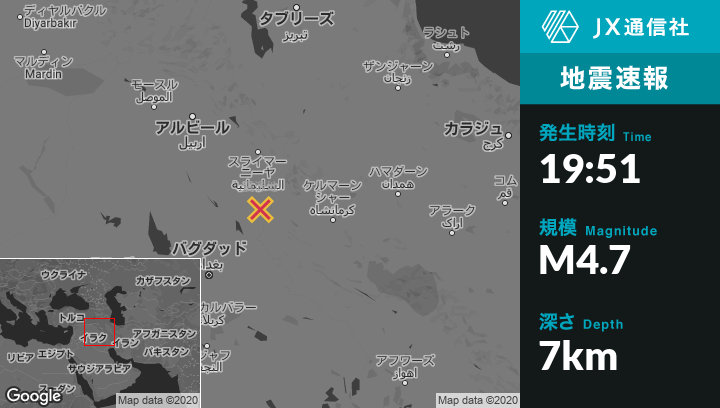| 震源地 | イランのSarpol-e Zahabから西北西38kmの地点 |