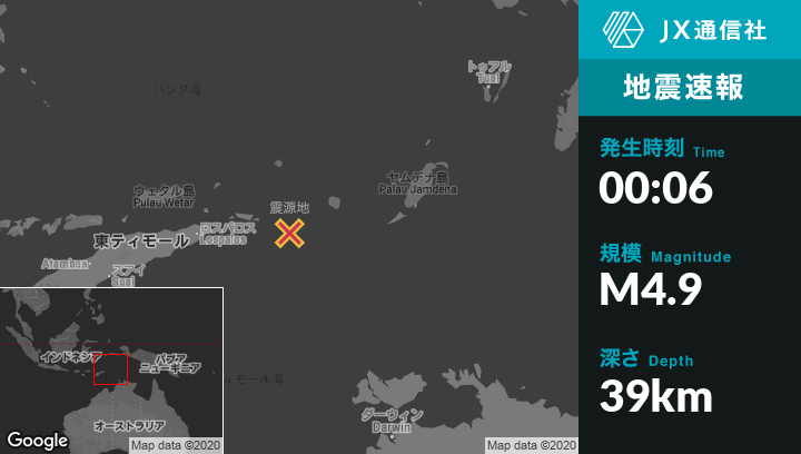 | 震源地 | インドネシアのSaumlakiから西278kmの地点 |