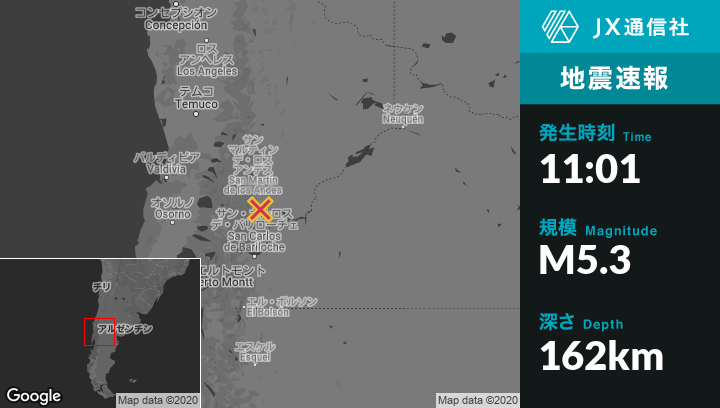 | 震源地 | アルゼンチンのSan Martin de los Andesから南東17kmの地点 |