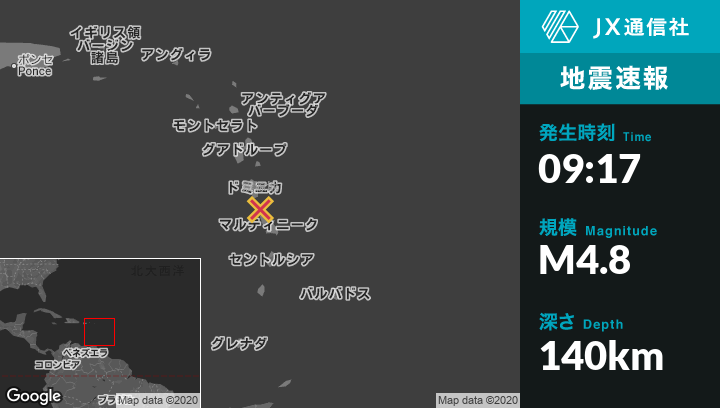 | 震源地 | ドミニカ国のBerekuaから南南東19kmの地点 |