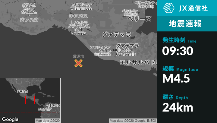 | 震源地 | メキシコのPuerto Maderoから南西127kmの地点 |