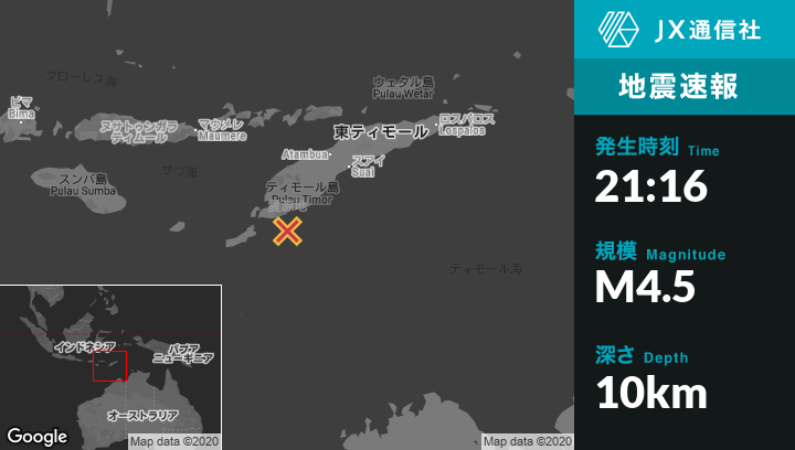 | 震源地 | インドネシアのKupangから南東60kmの地点 |