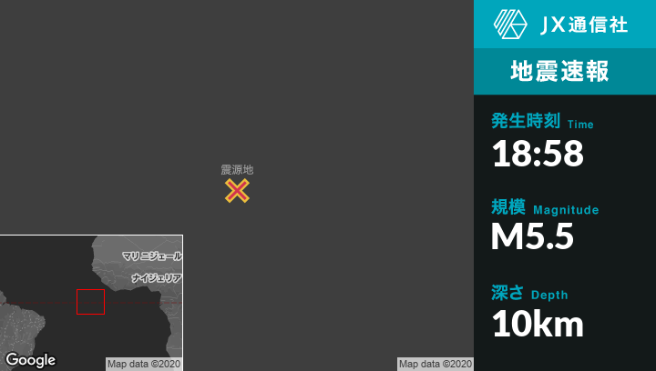 1月16日 18:58頃、セントヘレナのGeorgetownから北北西937kmの地点でM5.5の地震がありました。