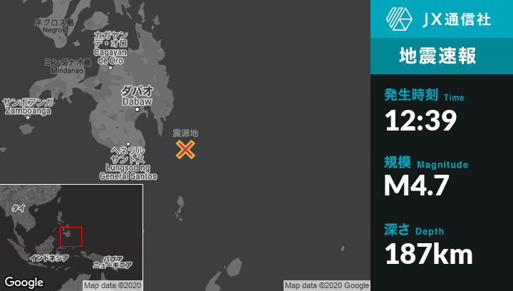 | 震源地 | フィリピンのPondaguitanから東南東88kmの地点 |
