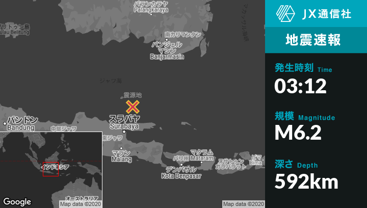 | 震源地 | インドネシアのKemeduranから北北東111kmの地点 |