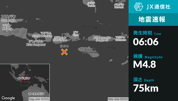 | 震源地 | インドネシアのPisangkemengから南96kmの地点 |