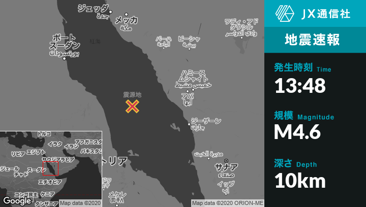 | 震源地 | サウジアラビアのAl Qunfidhahから南西182kmの地点 |
