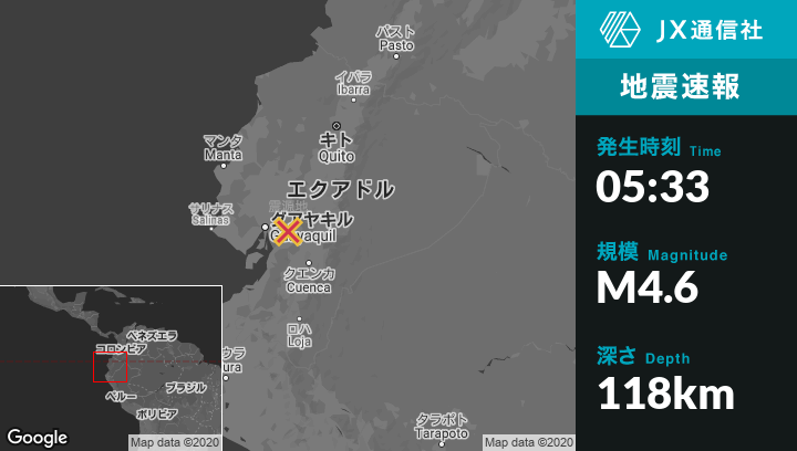 | 震源地 | エクアドルのCoronel Marcelino Mariduenaから北北西5kmの地点 |