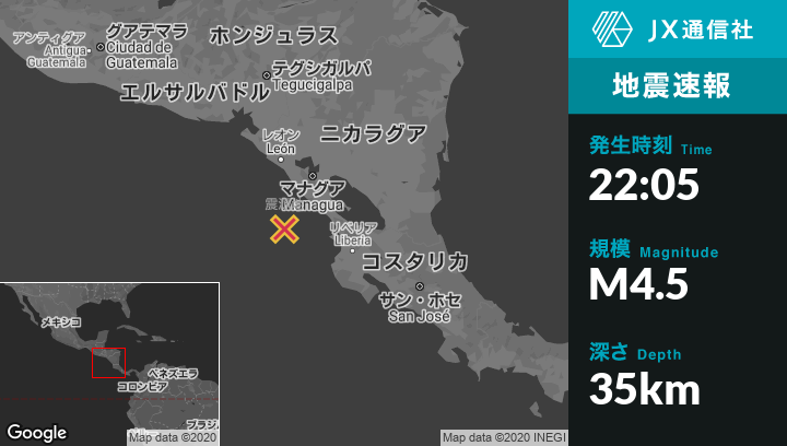 | 震源地 | ニカラグアのMasachapaから南南西74kmの地点 |