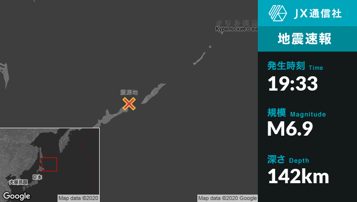 | 震源地 | ロシアのKuril'skから東北東92kmの地点 |