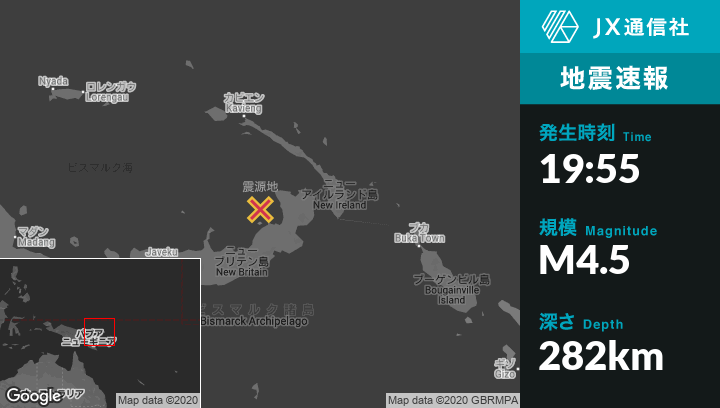 | 震源地 | パプアニューギニアのRabaulから西南西114kmの地点 |