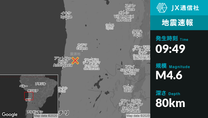| 震源地 | チリのCalamaから南西80kmの地点 |