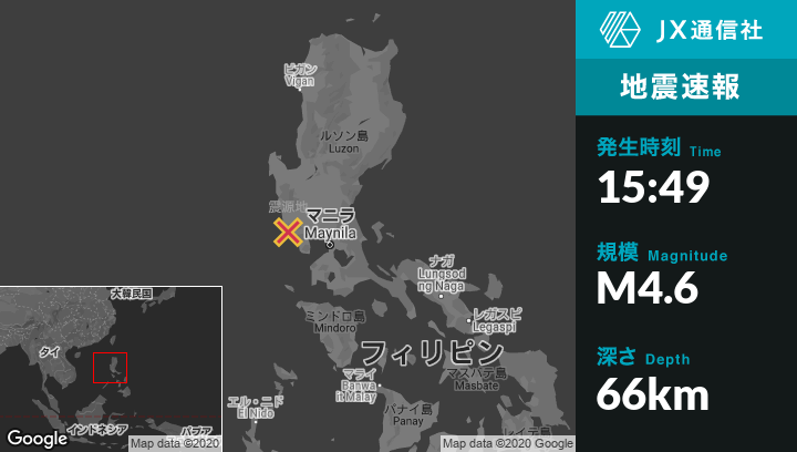 3月19日 15:49頃、フィリピンのSan Marcelinoから南南西1kmの地点でM4.6の地震がありました。