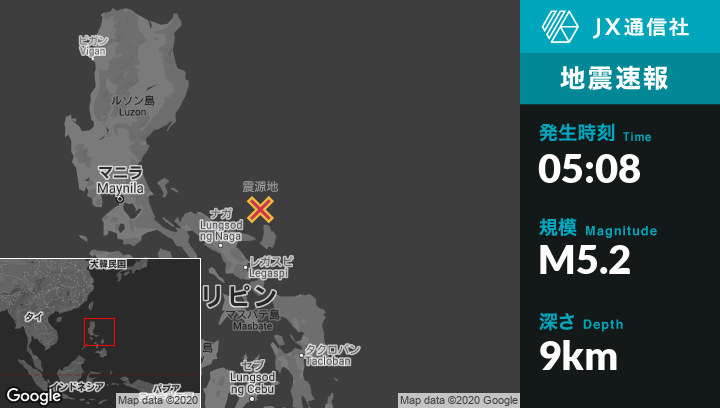 3月20日 05:08頃、フィリピンのPandanから北北西51kmの地点でM5.2の地震がありました。