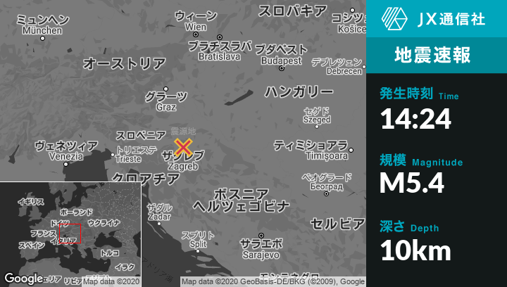 | 震源地 | クロアチアのKasinaから南西3kmの地点 |