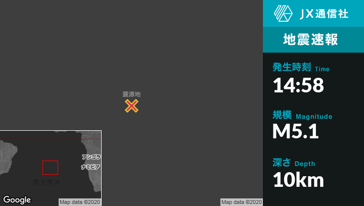 3月26日 14:58頃、セントヘレナのJamestownから南西780kmの地点でM5.1の地震がありました。