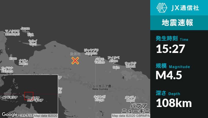 | 震源地 | インドネシアのAbepuraから西129kmの地点 |