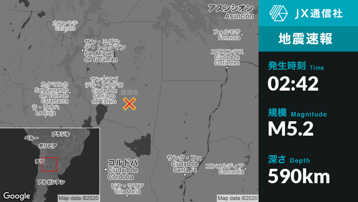 | 震源地 | アルゼンチンのColonia Doraから南西28kmの地点 |