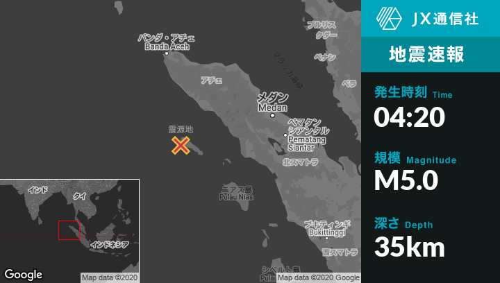 | 震源地 | インドネシアのSinabangから西北西76kmの地点 |
