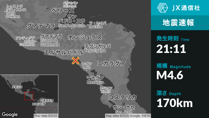 | 震源地 | ホンジュラスのAmapalaから西南西9kmの地点 |