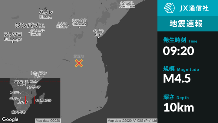 | 震源地 | ジンバブエのChipingeから南南東162kmの地点 |