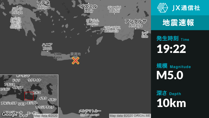| 震源地 | ギリシャのMakry Gialosから東18kmの地点 |