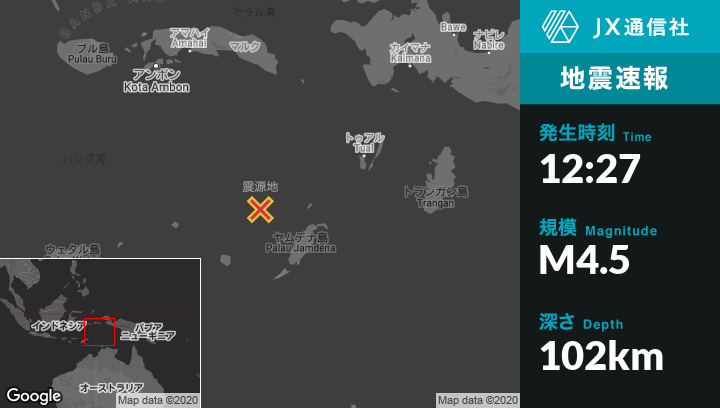 | 震源地 | インドネシアのSaumlakiから北北西167kmの地点 |