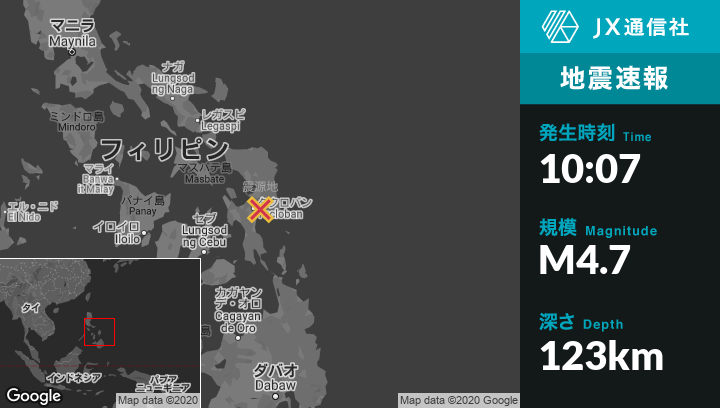 4月15日 10:07頃、フィリピンのGuirangから東北東0kmの地点でM4.7の地震がありました。