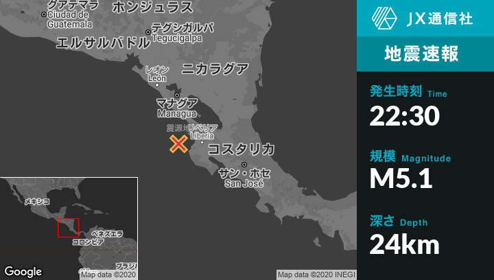 | 震源地 | コスタリカのSardinalから西北西64kmの地点 |