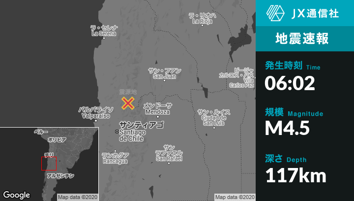 4月17日 06:02頃、チリのSan Felipeから北東71kmの地点でM4.5の地震がありました。