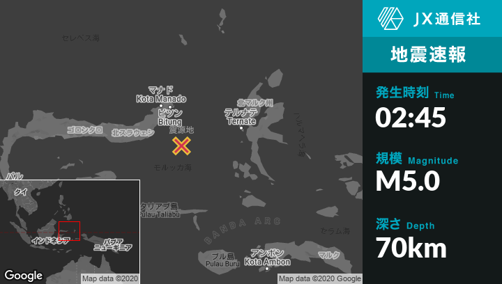 | 震源地 | インドネシアのTondanoから南南東124kmの地点 |