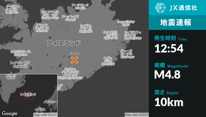 | 震源地 | アイスランドのHofnから西北西127kmの地点 |