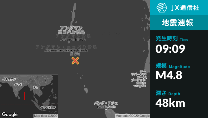 4月21日 09:09頃、インドのMoheanから北北西159kmの地点でM4.8の地震がありました。