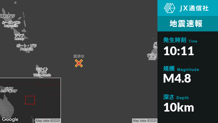 | 震源地 | バヌアツのIsangelから東北東325kmの地点 |