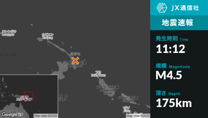 | 震源地 | パプアニューギニアのTaronから北北西51kmの地点 |