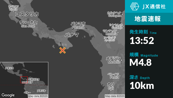 | 震源地 | パナマのTonosiから西南西56kmの地点 |