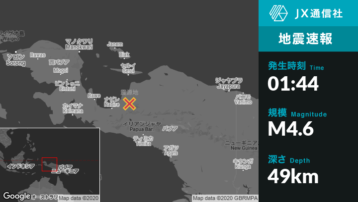| 震源地 | インドネシアのNabireから東北東93kmの地点 |