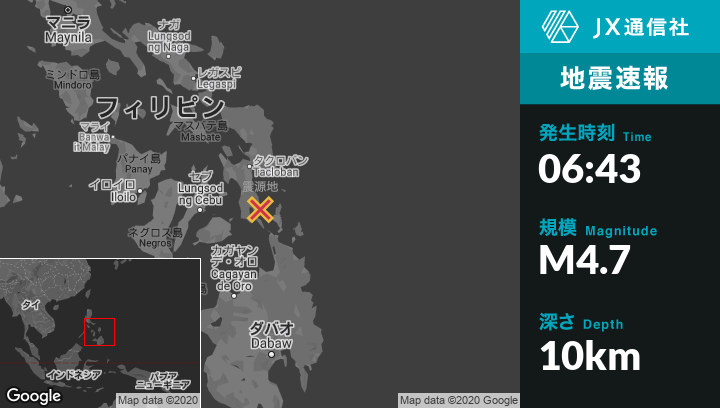 | 震源地 | フィリピンのHinunanganから北6kmの地点 |
