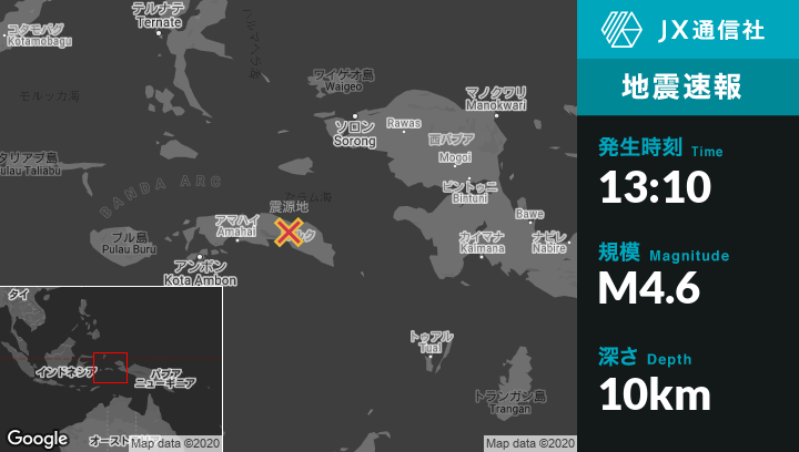 | 震源地 | インドネシアのAmahaiから東北東119kmの地点 |
