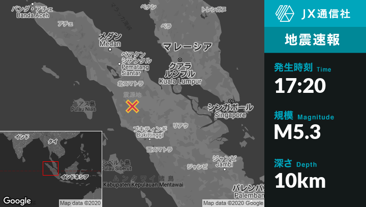 | 震源地 | インドネシアのPadangsidempuanから東南東40kmの地点 |