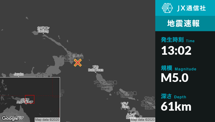 | 震源地 | パプアニューギニアのTaronから東南東38kmの地点 |