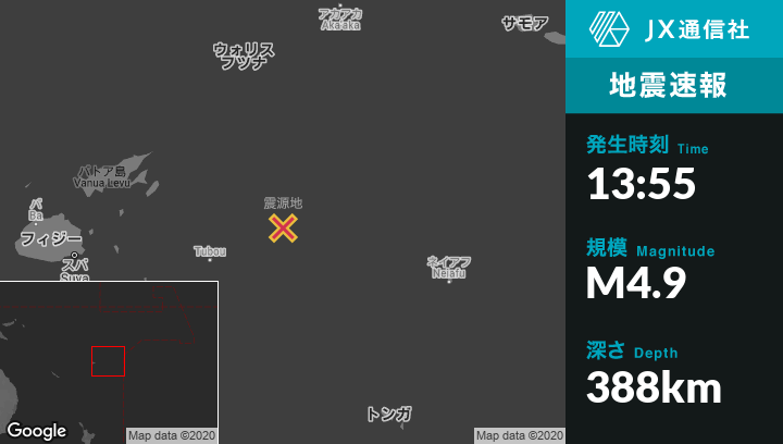 | 震源地 | ウォリスフツナのSigaveから南南東364kmの地点 |