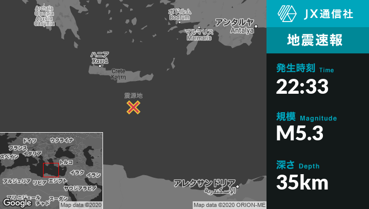 | 震源地 | ギリシャのPirgosから南南東95kmの地点 |