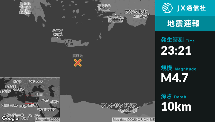 | 震源地 | ギリシャのGra Liyiaから南104kmの地点 |