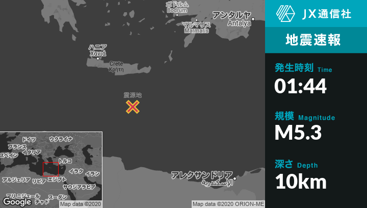 | 震源地 | ギリシャのIerapetraから南124kmの地点 |