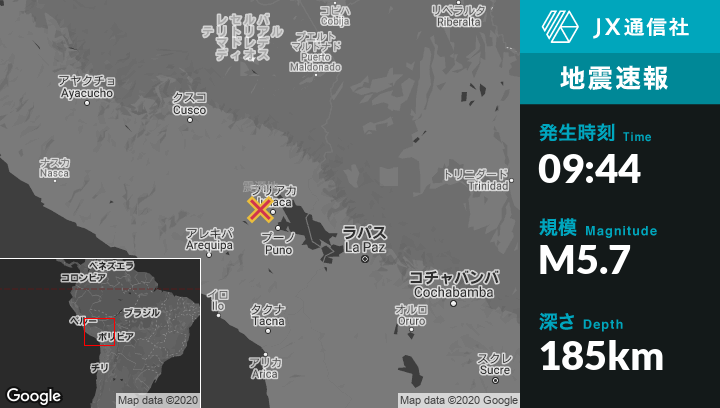 | 震源地 | ペルーのLampaから西北西6kmの地点 |