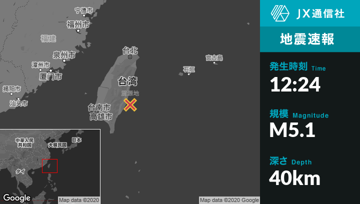 | 震源地 | 台湾のTaitung Cityから北東68kmの地点 |