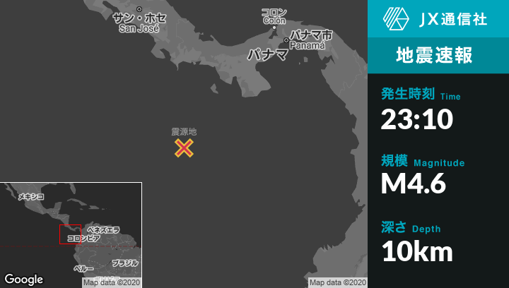 | 震源地 | パナマのPunta de Buricaから南251kmの地点 |