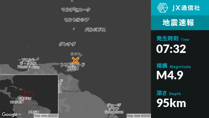 | 震源地 | トリニダード・トバゴのScarboroughから西南西41kmの地点 |
